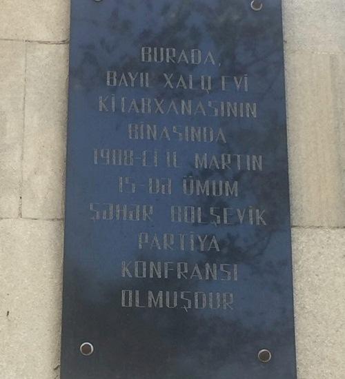 “Burada Bayıl Xalq Evi kitabxanasının binasında 1908-ci il martın 15-də Ümum Şəhər Bolşevik Partiya konfransı olmuşdur”, - barelyefdə qeyd edilib.