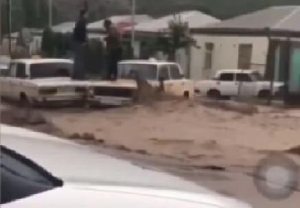 Axar.az xəbər verir ki, Goranboydan yayımlandan videoda selin VAZ-2106 markalı avtomobili aparması əks olunub.