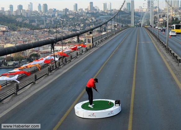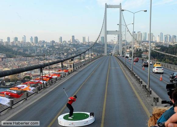 Dünya tərəfindən məşhur golfçu Tiger Vuds, Boğaziçi Körpüsündə Asiya qitəsindən Avropa qitəsinə tarixi zərbəni endirib.