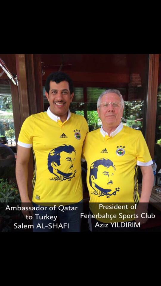 Axar.az xəbər verir ki, Əziz Yıldırım Qətər əmiri Şeyx Təmim bin Həməd əs-Saninin adının və portretinin əks olunduğu sarı rəngli yeni sezon formasını geyinib.