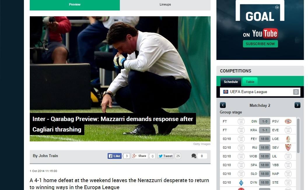 Dünyaca məşhur ingiltərənin Qol.com (Goal.com) onlayn idman qəzeti "İnter"-"Qarabağ" matçı öncəsi oyun barədə gözləntiləri açıqlayıb.