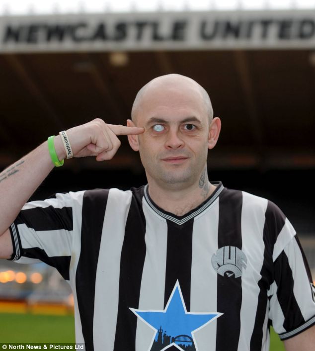 "Newcatle United" klubunun fanatı Endryu Kanavan 20 il əvvəl itirdiyi gözünün yerinə üzərində gerb olan süni göz taxdırıb.