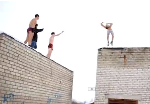 Rusiyanın Yaroslavl bölgəsinin Ribinsk şəhərində yarıçılpaq vəziyyətdə ekstrim idman növü ilə məşğul olan gənclər möhtəşəm şou göstəriblər.