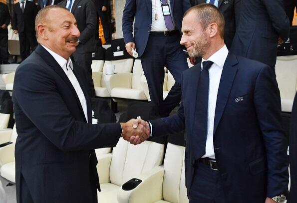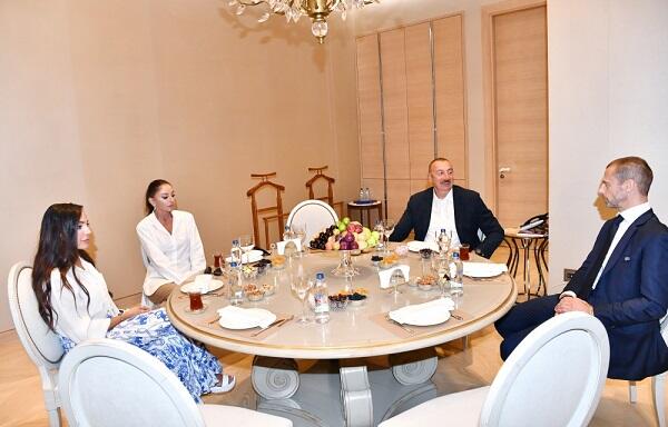 Prezident İlham Əliyev, birinci xanım Mehriban Əliyeva və qızları Leyla Əliyeva Avropa Futbol Federasiyaları Assosiasiyasının (UEFA) prezidenti Aleksander Çeferin ilə görüşüblər.