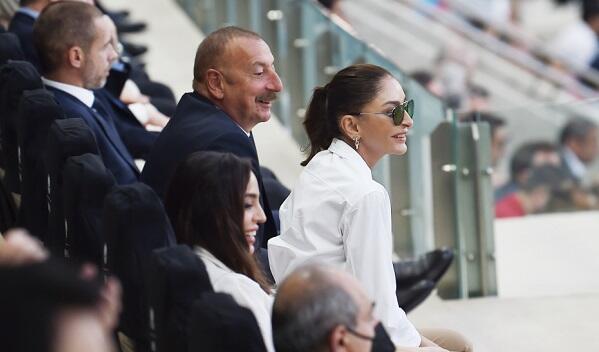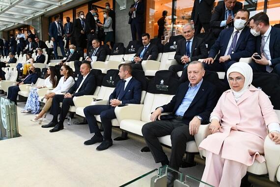 Axar.az xəbər verir ki, Azərbaycan Respublikasının Prezidenti İlham Əliyev, birinci xanım Mehriban Əliyeva, qızları Leyla Əliyeva, ölkəmizdə rəsmi səfərdə olan Türkiyə Respublikasının Prezidenti Rəcəb Tayyib Ərdoğan və xanımı Əminə Ərdoğan oyuna baxıblar.