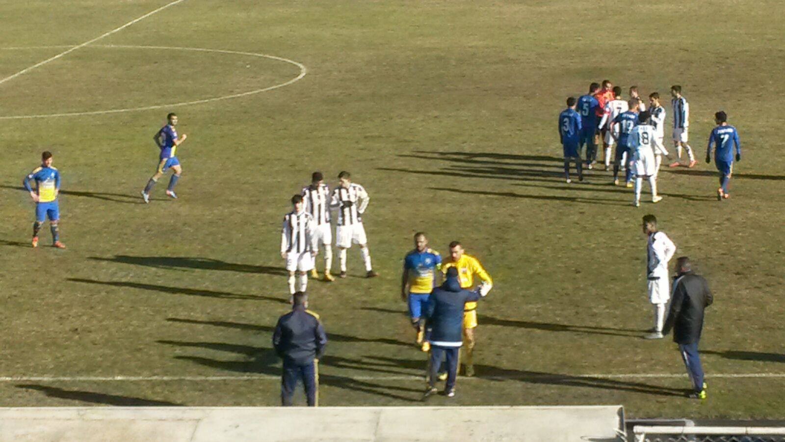 Report-un məlumatına görə, hakimin qərarına əsəbləşən "Kəpəz"in baş məşqçisi Şahin Diniyev auta çıxan topa zərbə vurub. Bu hərəkət "Neftçi"nin 15 nömrəli oyunçusu Ramosun etirazına səbəb olub. Nəticədə Ramosla Şahin Diniyev arasında qarşıdurma yaranıb. Oyun bir neçə dəqiqəliyinə dayandırılıb.