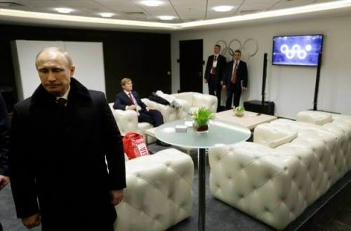 Soçidə keçirilən Qış Olimpiya oyunularının açılışı zamanı yarışın simvolu olan halqalardan birinin açılmaması anına Vladimir Putinin əsəbi emosiyası foto müxbirin kamerasının obyektivinə düşüb.