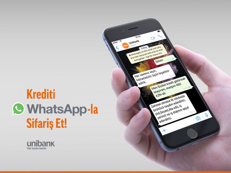 İndi elə olduğunuz yerdə “Unibank”a kredit üçün müraciət edə bilərsiniz. Bu imkanı sizə “Unibank”ın yeni UniVotsap kredit xidməti yaradır.