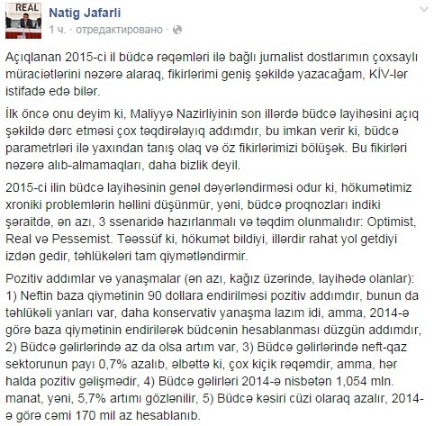 dərc etməsi çox təqdirəlayıq addımdır. Bu, imkan verir ki, büdcə