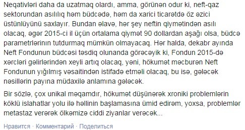 Axar.az xəbər verir ki, bu açıqlama ilə iqtisadçı ekspert Natiq
