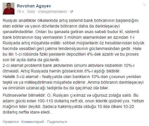 Axar.az xəbər verir ki, bu açıqlama ilə iqtisadçı Rövşən Ağayev