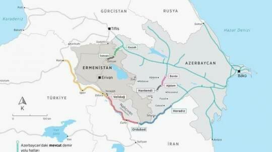 - Horadizdən Ordubada 166 km-lik yeni dəmiryol. Onun 43 km hissəsi Ermənistandan keçəcək.