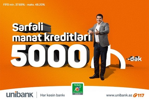 vətəndaşları "Unibank"a müraciət etməklə, 5000 AZN-dək nağd krediti