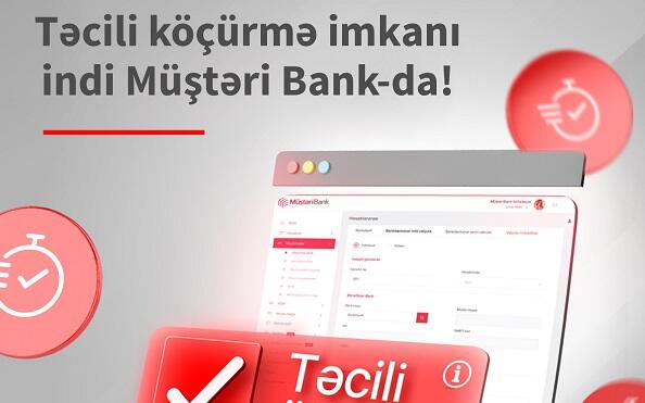 Axar.az xəbər verir ki, yeni funksiya vasitəsilə Müştəri Bank-da artıq təcili köçürmələri həyata keçirmək mümkündür. Təcili olması ilə seçilən ödənişlər müştəri tərəfindən təsdiqləndikdən sonra bank tərəfindən prioritet verilərək ən sürətli köçürmə kanalı vasitəsilə qarşı tərəfə köçürüləcək.