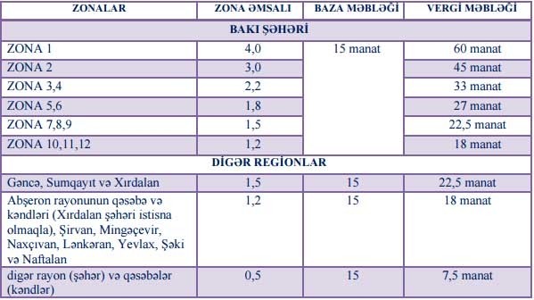 yerləşdiyi) ərazi üzrə əmsal 1-ci zona üzrə 4, ikinci zona üzrə 3,