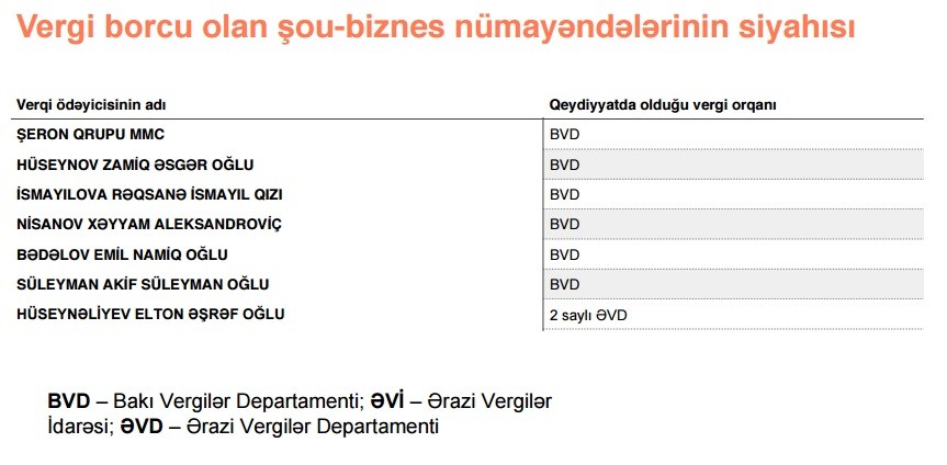 Vergilər Nazirliyi vergi borcu olan müğənnilərin yeni siyahısını hazırlayıb.