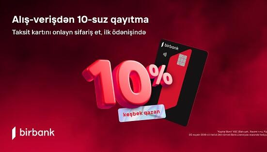 Birbank yeni kampaniyası ilə müştərilərinə daha çox qazanma imkanı yaradır. Belə ki, ölkənin ilk rəqəmsal bankı “İlk alış-verişə 10% keşbek” adlı yeni kampaniyaya start verir. Kampaniya çərçivəsində Birbank Cashback taksit kartını onlayn əldə edən hər kəs rəsmiləşmə tarixindən etibarən 30 təqvim günü ərzində ilk birdəfəlik 20 AZN və üzəri əməliyyatlara 10% (maksimum 20 AZN) keşbek qazana biləcək.