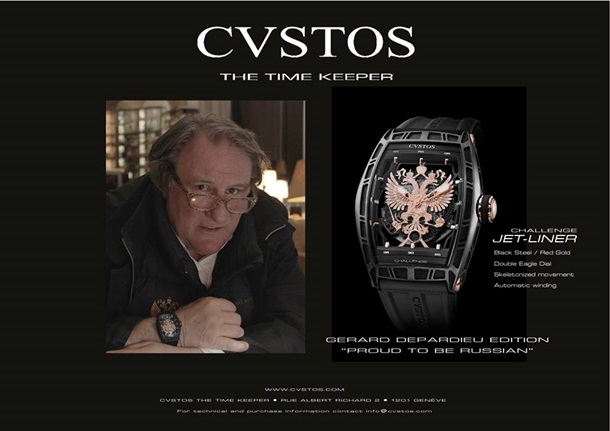 İsveçrənin "Cvstos" saat firması Rusiya vətəndaşlığını qəbul etmiş məşhur fransız aktyoru Jerar Depardyenin sifarişi ilə yeni saatlar istehsal edib.