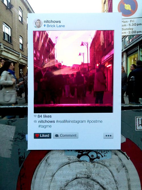 Hazırda Londonda "AKQA"da (rəqəmsal xidmət və məhsulların yaradılmasında ixtisaslaşan ideya və innovasiyalar kompaniyası) çalışan Braziliyalı rəssam Bruno Riberio yeni bir layihə üzərində işə başlayıb. O "İnstagram" filtrini (şəkil effektlərini) Londonun öz sevimli nöqtələrində Karton çərçivə şəklində real həyatda Londonun bəzi küçələrində yerləşdirib.
