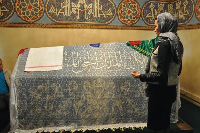 Bu da Meydançı Baba Odası: Əsasən yazılı lövhələr ilə Bektaşi Baba və Dərvişlərinə aid şəkillər sərgilənib bu bölümdə. Bir-bir oxuyur və yaddaş saxlancımın iç dünyasında qoruya-qoruya xəyal edirəm: “Ey günahkar evronuz üzü qara... Nə üz ilə Həzrətə qarşı vara?!” Bir ayrı yazılan da var: “Hacı Bektaş Babamızdır yürüdür cansız divarı...”