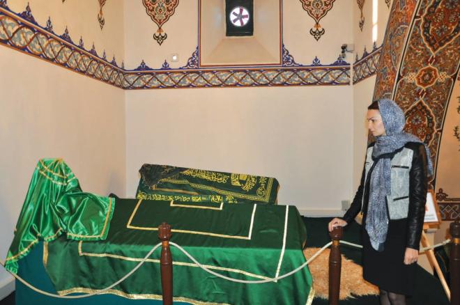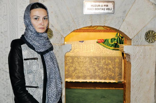 O müqəddəs məkanda Xan qızının ruhuna da rəhmət oxuyur, cümlə Qarabağ torpaqlarımızın işğaldan azad olunması üçün dilək edirəm. Dərgahın Qırxlar meydanı bölümündə yer alıb Qırxbudaq şamdan... Həzrəti Əliyə məxsus fikirlərin əl yazısı yer alan lövhə, Dərviş və Babalarına aid simvollar və Hacıbektaş Vəli Həzrətlərinin tabutunun qoyulduğu bölümün orijinal gümüş qapısı çəkir diqqətimi. Bir-bir ziyarət edir, bütün varlığımla ehtiram göstərirəm. Buradakı “Göy Eşik” deyilən qapıdan adlayıb Hacıbektaş Vəli Həzrətlərinin Türbəsinə yetişirik. Səlcuqlu memarlıq məktəbinin ən zəngin nümunələrindəndi bu türbə. Bütün divarlar boyu ruhu oyadan kəlamlar həkk olunub. O böyük şəxsiyyətin məzarı önündə ehtiramla iç dünyama qapılır, dualarımı edirəm.