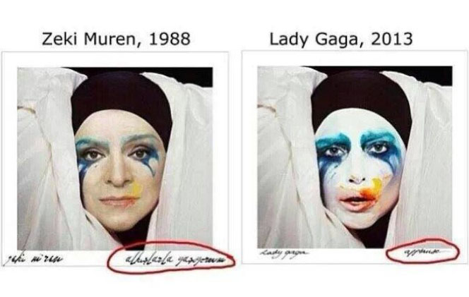 Ledi Qaqa Zəki Mürenin 1998–ci ildə çıxan "Alqışlarla yaşayıram" albomunda istifadə etdiyi fotoşəklin eynisini "Alqış" adlı klipində istifadə edib.