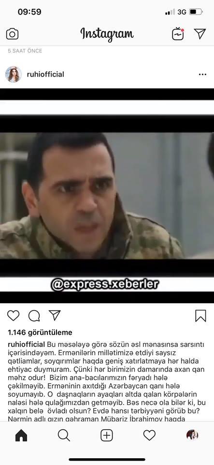 “Erməninin axıtdığı Azərbaycan qanı hələ soyumayıb. O daşnaqların ayaqları altda qalan körpələrin naləsi hələ qulağımızdan getməyib. Bəs necə ola bilər ki, bu xalqın belə övladı olsun? Evdə hansı tərbiyəni görüb bu? Nərmin adlı qızın qəhrəman Mübariz İbrahimov haqda dedikləri absurddur. Amma ən böyük faciə bu torpaqda yetişən, milləti azərbaycanlı, əqidəsi mərhəmət olması gərəkən bir qızın vətəninə xəyanətidir! Mübariz sənin kimilər bu gün ağlına gələni danışsın deyə vətən uğrunda şəhid oldu? Ar olsun, ayıb və haram olsun bu qan sənə! Dostlar, düşünürəm ki, bu mənəviyyatsız biri ilə dövlət orqanları danışmalıdır. O, qanun qarşısında cavab verməlidir. Biz o xainin şəklini paylaşıb, reklam etməkdənsə, bunu tələb etməliyik”, - müğənni bildirib.