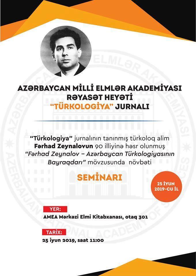 “Türkologiya” jurnalının nəzdində “Azərbaycan türkologiyasının Bayraqdarı - Fərhad Zeynalov” adlı seminar keçiriləcək.