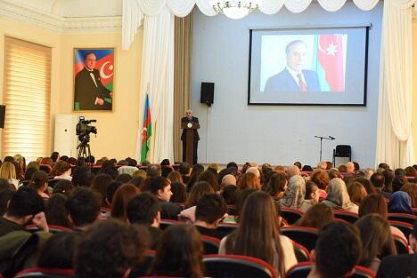 Elm və innovasiyalar üzrə prorektor, professor Novruz Məmmədov bu mərasimin artıq ənənə halını aldığını və bu günün anılmasının mənəvi borc olduğunu deyib: “Hamımız özümüzə borc bilirik ki, onu xatırladaq, onun Azərbaycan dövləti və xalqı üçün gördüyü işlərlə bağlı fikirlərimizi bildirək. Biz onun vəsiyyətlərini ləyaqətlə həyatımız boyu yerinə yetirəcəyik”.