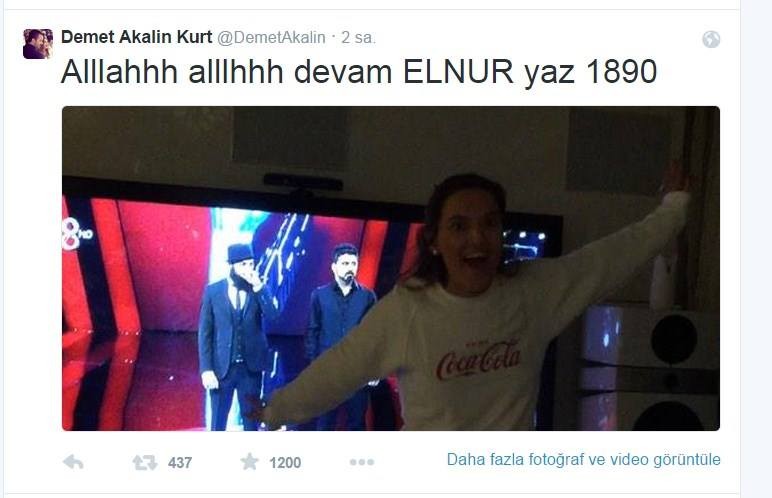 Bir neçə dəqiqə sonra qalibi bəlli olacaq "O Səs Türkiyə" musiqi yarışmasında həyəcanlı anlar yaşandığı zaman türkiyəli müğənni Demet Akalın rəsmi Tvitter hesabından hər kəsi şok edən tvit paylaşıb.