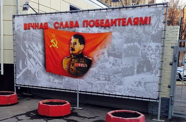 Sözügedən plakatda Stalinin portreti ilə yanaşı, "Qaliblərə əbədi eşq olsun" şüarı da qeyd olunub.