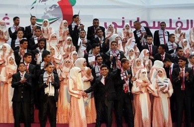 Axar.az "İslam-today.ru"ya istinadən xəbər verir ki, Fələstində 400 gənc cütlük eyni anda nikaha daxil olublar.