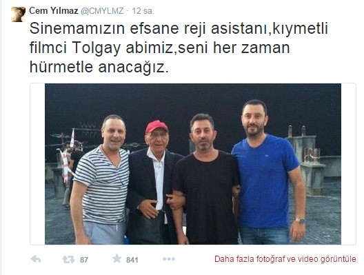Ölüm xəbərini eşidən məşhur komediya ustası Cem Yılmaz isə mərhum rejissorla fotosunu paylaşaraq bu sözləri yazıb: "Kinomuzun əfsanəvi rejissor assistenti, dəyərli sinemaçı qardaşımız Tolqay, səni həmişə hörmətlə yad edəcəyik".