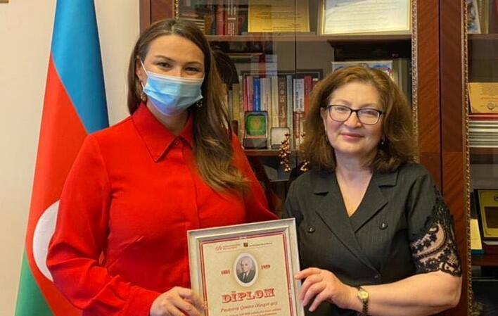 Kult.az xəbər verir ki, Ü.Talıbzadə böyük ictimai xadim, şair, ədəbiyyatşünas Abdulla Şaiqin 140 illik yubileyinə həsr edilmiş “Arazdan Turana” virtual konfransının təşkilində göstərdiyi dəstəyə, Türk ədəbi və mədəni dəyərlərinin təbliği yolunda verdiyi töhfələrə görə Q.Paşayevanın "Abdulla Şaiq" diplomu ilə təltif edildiyini bildirib, diplomu ona təqdim edib.