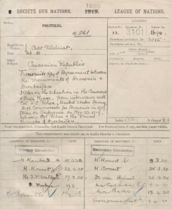Zəngəzurun 1919-cu ildə ermənilərə verilməsini göstərən, 1919-cu il noyabrın 23-də Tiflisdə üç Cənubi Qafqaz respublikasının təmsilçilərinin iştirakı ilə keçirilən sülh konfransının danışıqlarının stenoqramının surəti və müqavilənin üz qabığını sizlərə təqdim edirəm. Bu sənədi uzun zamandır axtarırdım və nəhayət, Amerika Konqres kitabxanasına yazdığım məktubun cavabı gəldi. Sənədin tam surətini mənə elektron formada göndərdilər.