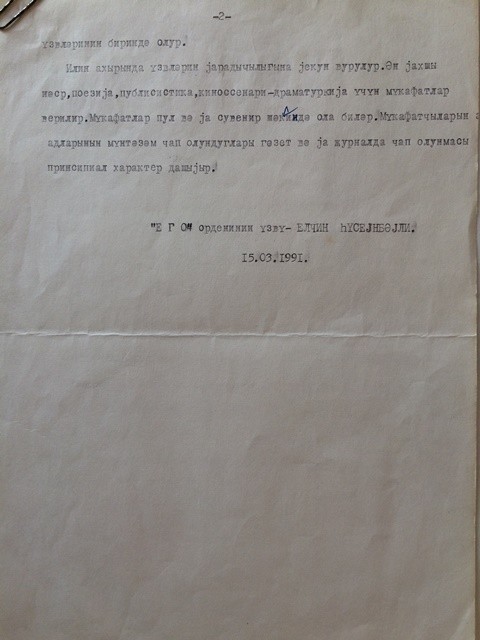 köhnə nizamnaməsi 1991-ci il mart ayının 15-də makinada yazılıb.