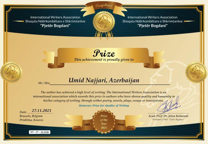 Azərbaycanlı şair və tərcüməçi Ümid Nəccari Belçikanın 2021-ci ilin nüfuzlu “Bogdani” beynəlxalq mükafatına layiq görülüb.