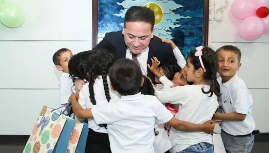 Onu görən uşaqlar sevincdən aparıcını qucaqlayıblar.