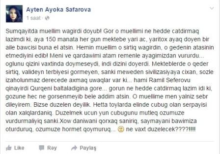 "Sumqayıtda müəllim şagirdi döyüb! Gör o müəllimi nə həddə