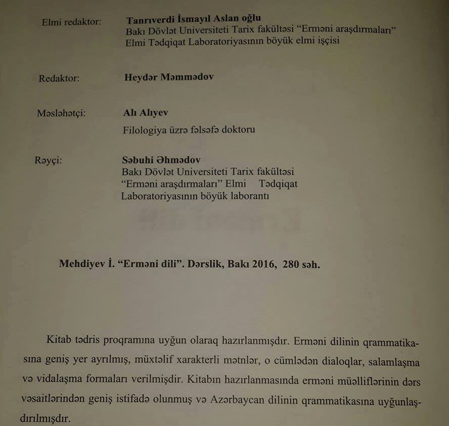 Azərbaycanda "Erməni dili" adlı dərs vəsaiti ərsəyə gətirilib.