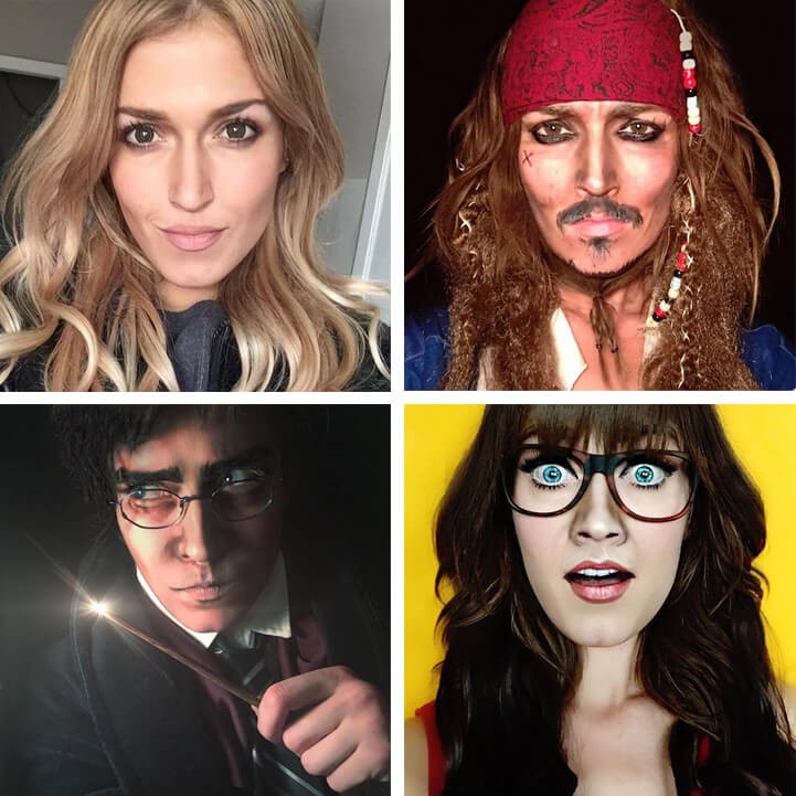 Axar.az xəbər verir ki, o, makiyaj üsullarından istifadə etməklə özünü İngiltərə kraliçasi II Yelizaveta, aktyor Conni Dep və digər məşhur simalara bənzədir.