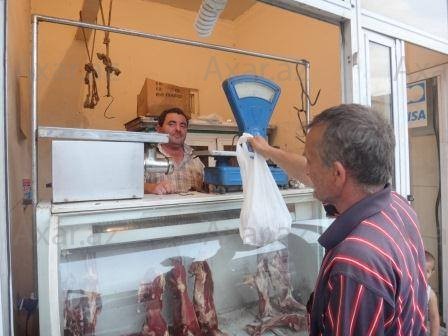 Bir müştəri yaxınlaşaraq ətin qiymətini