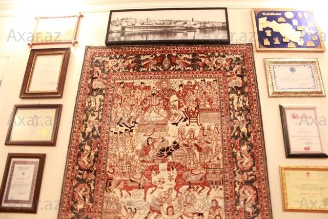 Tarixi xalçaların, mütəkkə və nalçaların fonunda milli tarixi