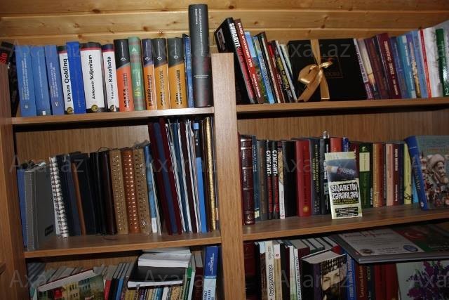 Kitab rəfində türkcə kitablar çoxluq təşkil etsə də, müxtəlif