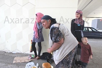 burada dilənən qadınlar və onların ətrafında fırlanan azyaşlılar