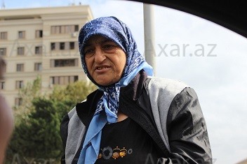 Yaşca böyük olan bu qadın, deyəsən burda dilənənlərə həm də
