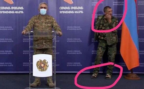 Ermənistan Müdafiə Nazirliyinin rəsmi nümayəndəsi Artsrun Ovannisyan brifinq zamanı dünyanı “şoka salan” hərbçisini nümayiş etdirib. Daha doğrusu, bu “bənzərsiz” hərbçi təsadüfən kameralara yaxalanıb. Məlum olub ki, Ermənistan onu hərbi sirr kimi gizlədirmiş. Amma qəfildən obyektivə tuş gəlib... və gündəmə quş gəlib, bir yekə başıboş gəlib.