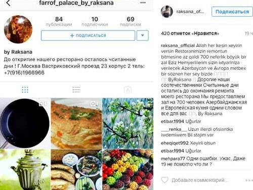 Müğənni Rəqsanə İsmayılova Moskvada yeni restoran açır.
