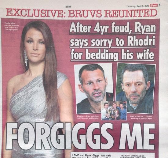 Qəzet "Forgive me" (Məni bağışla) sözünü Qiqz qardaşlarının soyadından istifadə edərək "ForGiggs me" başlığı ilə yayımlayıb.