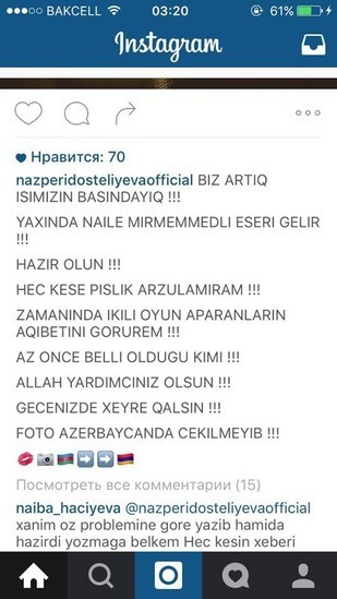 prodüseri Mikayıl Hüseynovun sənətçinin İnstaqram hesabında